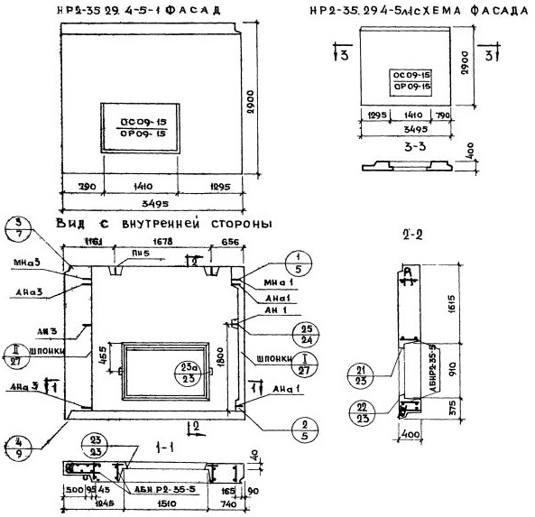 НР2-35.29.4-5-1   Наружная стеновая панель рядовая по Серии 1.132-1.