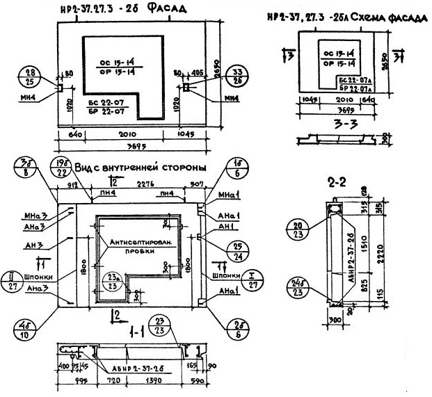 НР2-37.27.3-2бл Наружная стеновая панель рядовая по Серии 1.132-1.